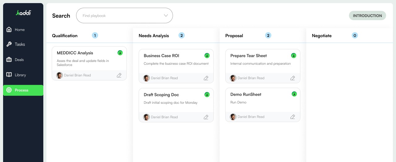 Kaddi understands how your team sells - the stages, plays, and exit criteria that define your process.